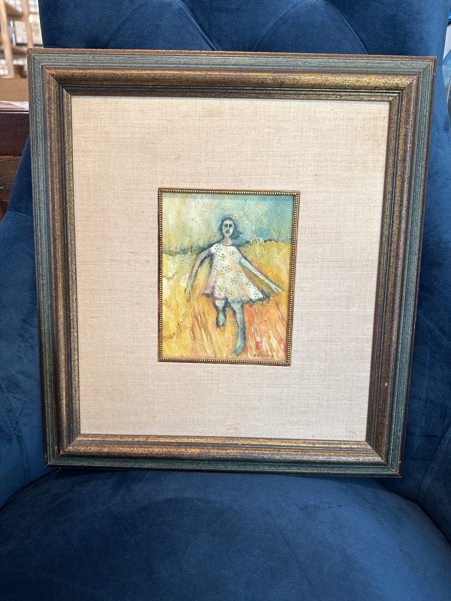Original Oil "Girl Running" by ATX artist Lu Ann Barrow (signed, 14"x16")