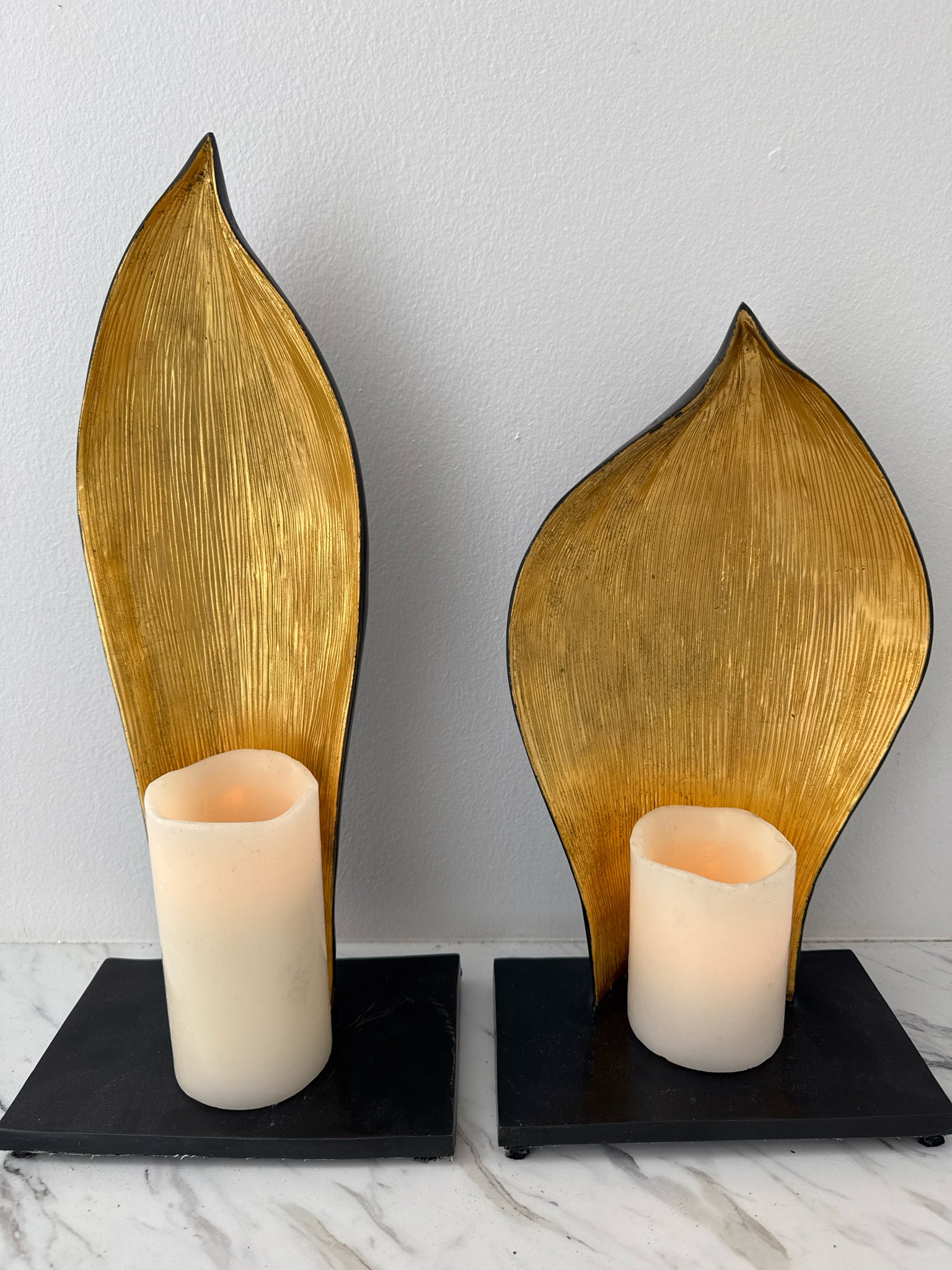 PAIR of Alexander Lamont Gold & Black Pod Candleholders with Faux Candles