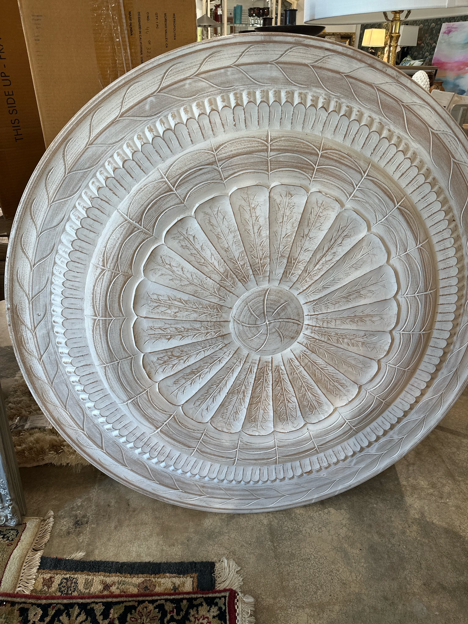 Round Whitewash Wood Floral Carving / Hanging Art 47"(from RoundTop)